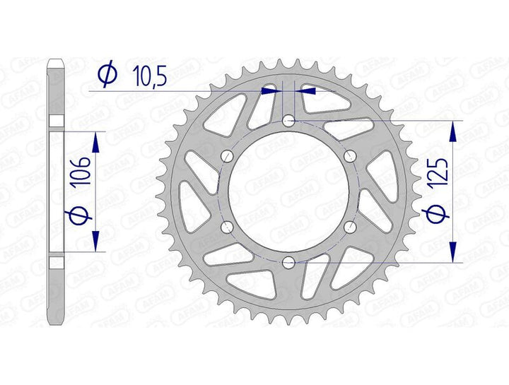 Afam aluminum crown gears are made of an alloy that is both light and tough. The Quality of Machining and the Precision of the Cutting Make AFM A Worldwide Standard Settes for Motorcycle Transmission Parts. Racing Aluminum Crown Gear Ultra-Light with Hard Anodizationreinforced Resistance to free and wearrange-topping Finish and Qualityessential for Competitive Riding Chain_pitch: 520.0 Material: Aluminum Rear_Poket_Teeth_Teet: 45.0.0 REAR_PROET_SSION: Ultra-Light Hard Anodized