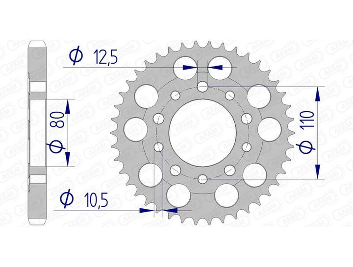 Afam aluminum crown gears are made of an alloy that is both light and tough. The Quality of Machining and the Precision of the Cutting Make AFM A Worldwide Standard Settes for Motorcycle Transmission Parts. Racing Aluminum Crown Gear Ultra-Light with Hard Anodizationreinforced Resistance to free and wearrange-topping Finish and Qualityessential for Competitive Riding Chain_pitch: 530.0 Material: Aluminum Rear_Procet_Teetth_Teet: 42.0.0 REAR_PROET_SSION: Ultra-Light Hard Anodized