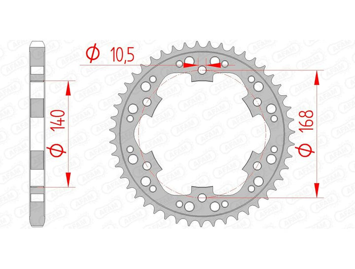 Afam Steel Rear Pro's are Machined From C45 Steel, and are then Treated to Higher Hardness and Even Resistance. The High-Quality Manufacturing Process and the Cutting Precision Made AFAM A World Leader for Motorcycle Transmission Parts. Steel rear Sprockettop of Range Manufacturing and QualityContributes to Transmission Kit Durability Chain_pitch: 525.0 Material: Steel rear_prolet_teeth_count: 41.0 REAR_PROET_TEPE: