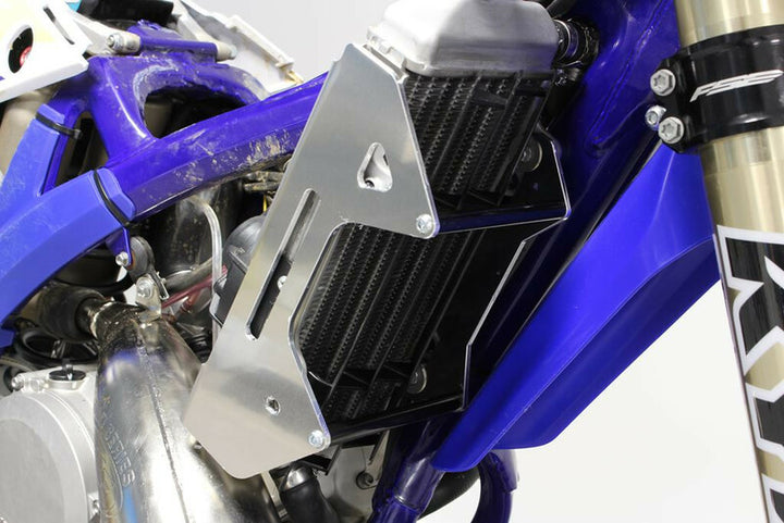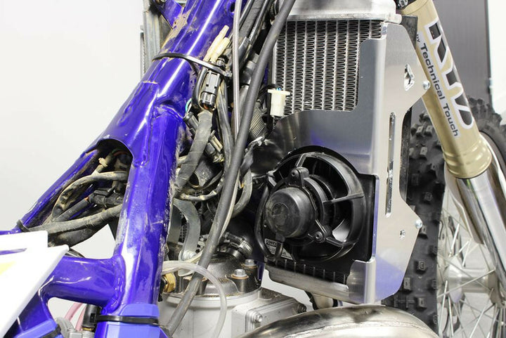 The Axp Radiator Guards are Made of 4mm Aluminum Thick With A 3 Points Fixation System. They fit with the sherco fan and the full set Weight is 0.850kgs. The part coming behind the radiator is against the central part of the frame for a maximum of rigidity. Compatible with the oem Plastic Air Deflectors. Color: Aluminum & Black