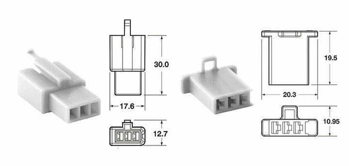 Bihr 3-Pluggs Connectors 110 ml oe Type offers Five complete contacts with houses, locks, rubber seals and terminals, designed to give secure and prolonged electrical connections. These Non-sealed contacts is off OEM type, which makes them exactly matches original made components and gives a reliable fit.