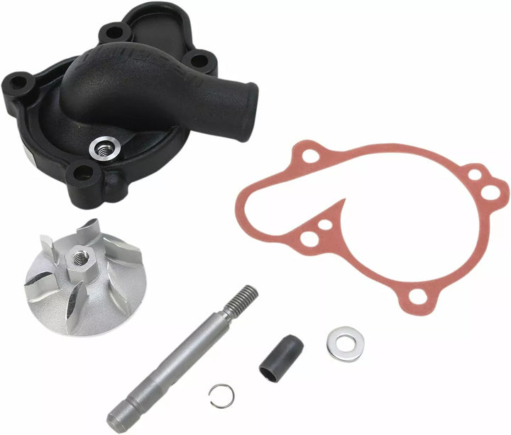 An aluminum investment-cast water pump cover and impeller combo; Specific designed to Enhance The Performance of Your Engine メ S Cooling System, High-Flow, Hydrodynamic Water Pump Kit Has Been Tested and Designed to Flow More Coolant, By IncREASING THE FLOW AT ALL RPM RANGES, THE ENGINE WILL COOLE AT A MORE CONSTANTANT TEATANT TEATANT TEATANT Efficiency, Extend Engine Life