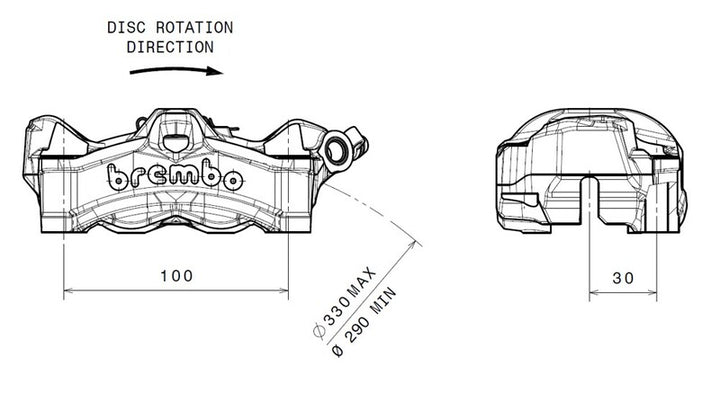 Piston Ø: 30mm Material: Aluminum Center to Center: 100mm Brake Fluid: Dot 4 Without Brake Pads Center to Center Distance: 100.0 Color: Black Construction: Monobloc Diameter Ø (mm): 30.0 Manufacturing: Coulé Material: Aluminum Number Number of Pistons: