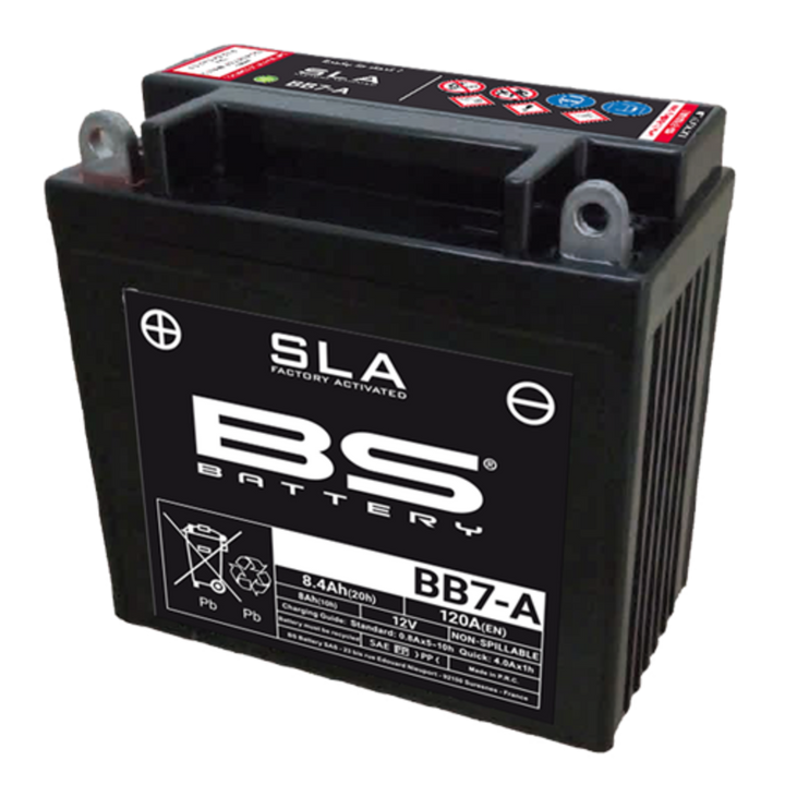 BB7-A is a 12V 8.4Ah battery from our SLA series, designed to provide a simple and reliable user experience. This battery is ready to use and offers a 100% maintenance-free and spill-free solution that is perfect for powersport vehicles requiring high performance.