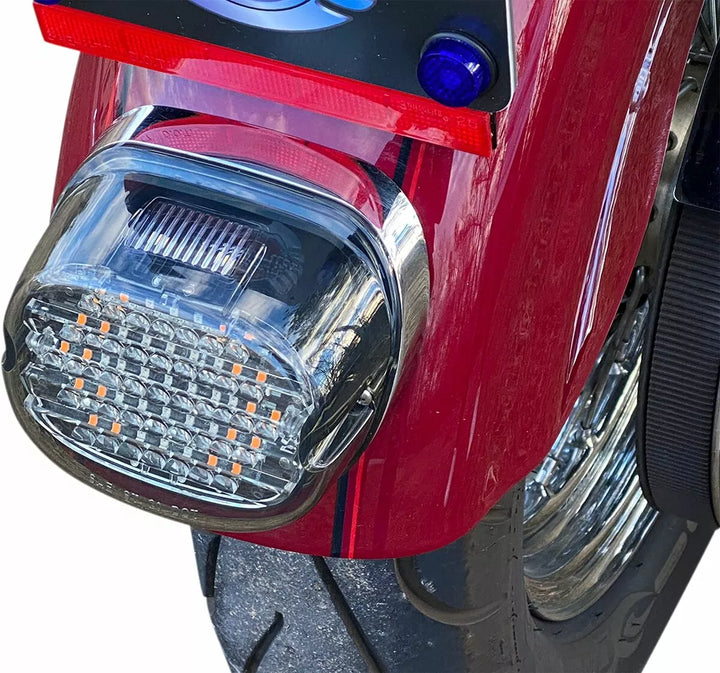 45 Dual-Intensity Red Running and Brake Leds, Built-in Left and Right Amber Auxiliary Turn Signals, The Low Profile Design Protrudes Only 2 "From the Stock Taillight Baseplate for A Sleek, Custom Solution for the Rear Fender, Replacing and Nashel Wassel Wassel Wassel Taillight Circuit Board, Complely Sealed Unit, Dot and Sae Compliant Run/Brake Light, not recommended for inverted installation on '01 fxdwg2, '02 fxdwg3, '99 -'08 fxdwg, '08 -08 -13 fxdf, ' '99 -'10 fxstc, '99 -'07 fxst, '99 -'06 fxsts, '09 -'12 xr1200 and xr1200x., Not compatible on trike models, on models with run/brake/turn module installed or on can model. Harley-Davidson ᆴ Low Rider (FXLR) and Low Rider S (FXLRS) Require Wiring Adapter 2130-0304 For Proper Operation (Sold Separately)., '22 -'23 Low Rider St (Fxlst) Requires Wiring ADAPTER 2130-03