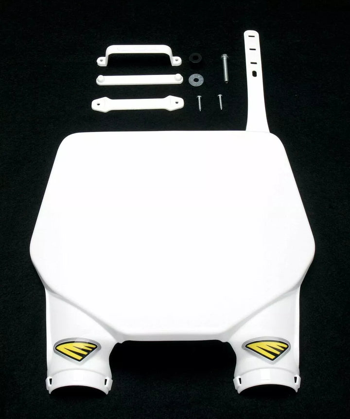 Used by Factory Teams, Ultra-Lightweight and Slim With Extra Space For Stabilizers and Bike Electronics, Includes Works Cable Guide and a Crossbar Strap, Top Mounting; Wraps around the Fork Tubes, Older Models Include Upper Mounting Bracket to Fit Front Mount Triple Clamps, Comes with White and Black Screens, Made in the U.S.A.