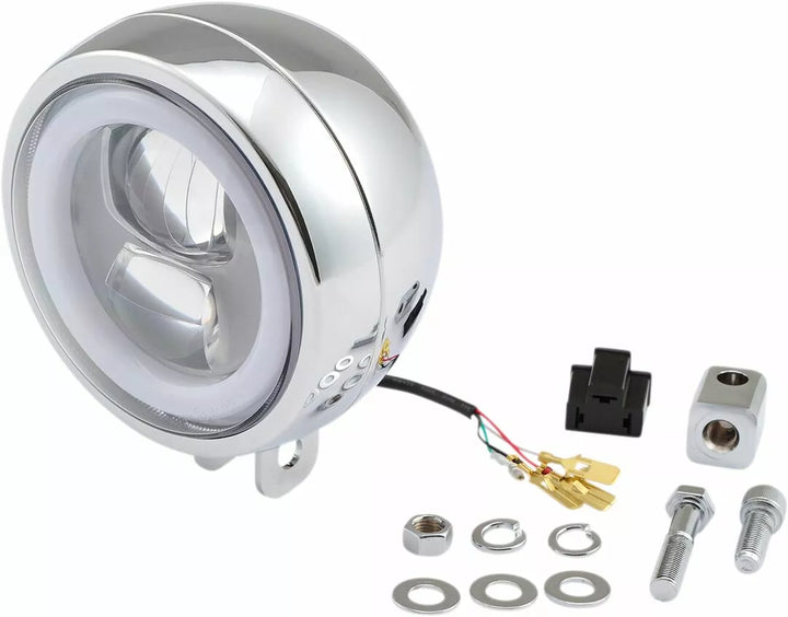 LED Headlight With Tight Metal Housing, E-Marked Position and Parkinglight (Angel Eye), Drivinglight and High Beam, Highly Vibration- And Waterresistant