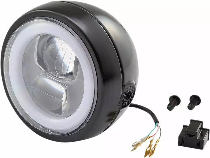 LED Headlight With Tight Metal Housing, E-Marked Position and Parkinglight (Angel Eye), Drivinglight and High Beam, Highly Vibration- And Waterresistant