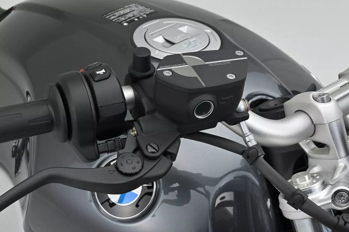 CNC-Machined Aluminum Master cylinder Tank of the rear Brake in Black and Gun-Metal Gray Double-Anodized, Used With The Oem Gasket / Diaphragm