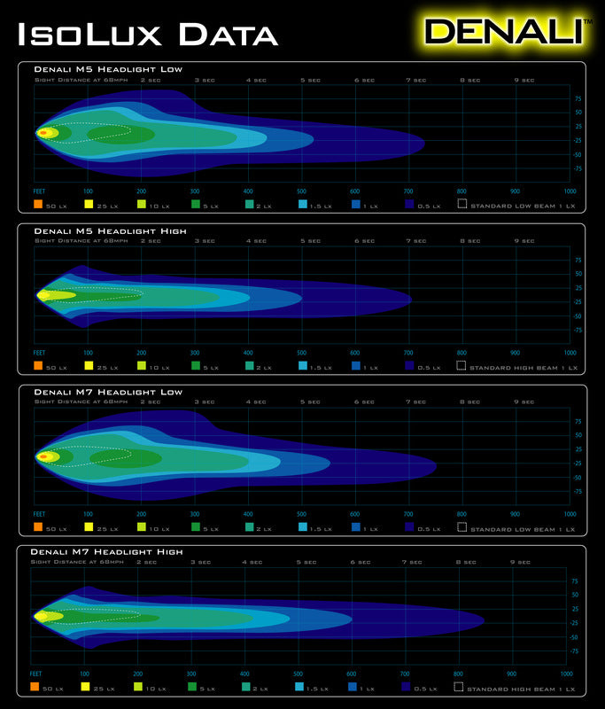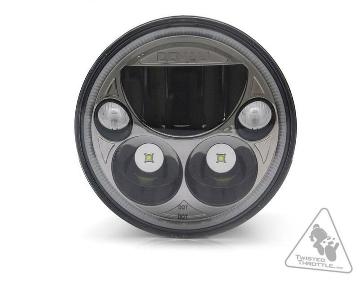 Upgrade your high with more powerful light and modern design - Denali M5 LED front lamp is a direct one Plug-and-Play replacement for round 145 mm (5.75 ”) Standard headlights. With his unique Black Chrome optics, built -in Halo light And a light image that goes far beyond both halogen and standard LED lamps, the M5 is as much a still as a safety upgrade.