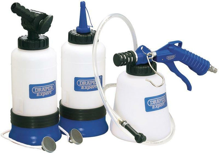 Pneumatic Brake bleeder equipped with 2 Additional Tanks with Magnetic Base. Delivered with Hook System and 1/4 "BSP Pneumatic Fittingcapacity: 0.75L Spare Plastic Tips: 89402005