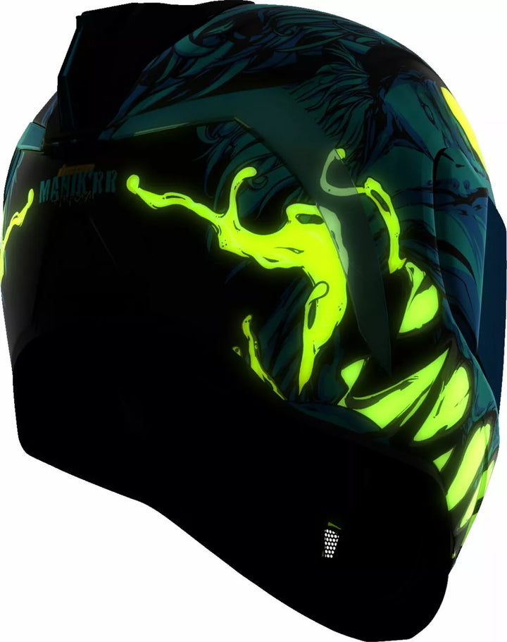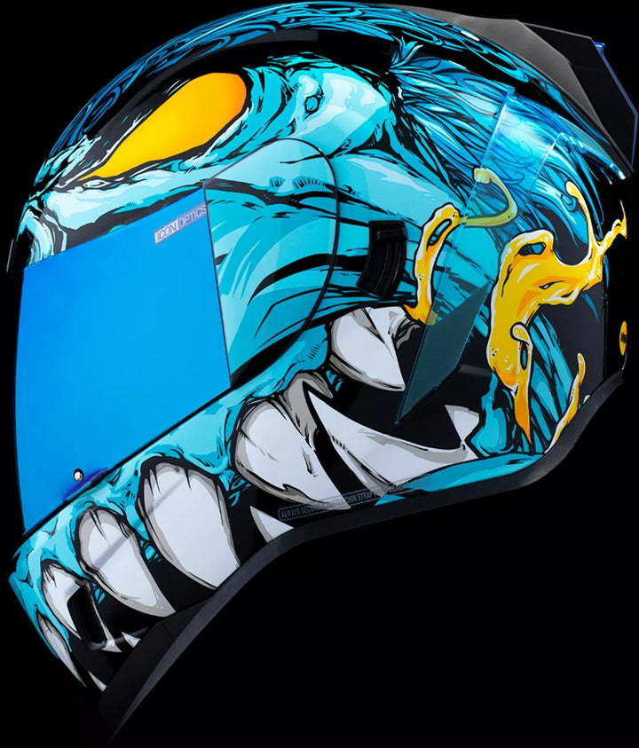Continuous Venting System, FAG-FREE ICON OPTICS ™ Shield with Rapid-release ™ System, Injection Molded Polycarbonate Shell for Strength, Internal Airflow Geometry, Sculpted NECK Roll, Prolock ™ Switsch, the EXTERIOR WITH LOCKING SHIVING SWEQU Visor must only be used while the main face shield is in the fully closed position, removable Molded Breath Deflector, Removable Hydradry ™ 3-Piece Moisture Wicking Liner, Internal Speaker Pockets Work With Icon's R.A.U. Bluetooth Device, Includes Dark Smoke Dropshield ™ and Rubatone Black Speedfin ™