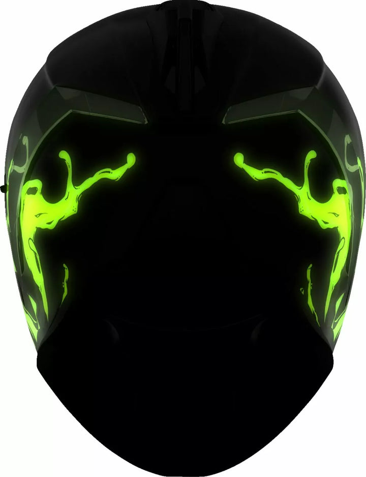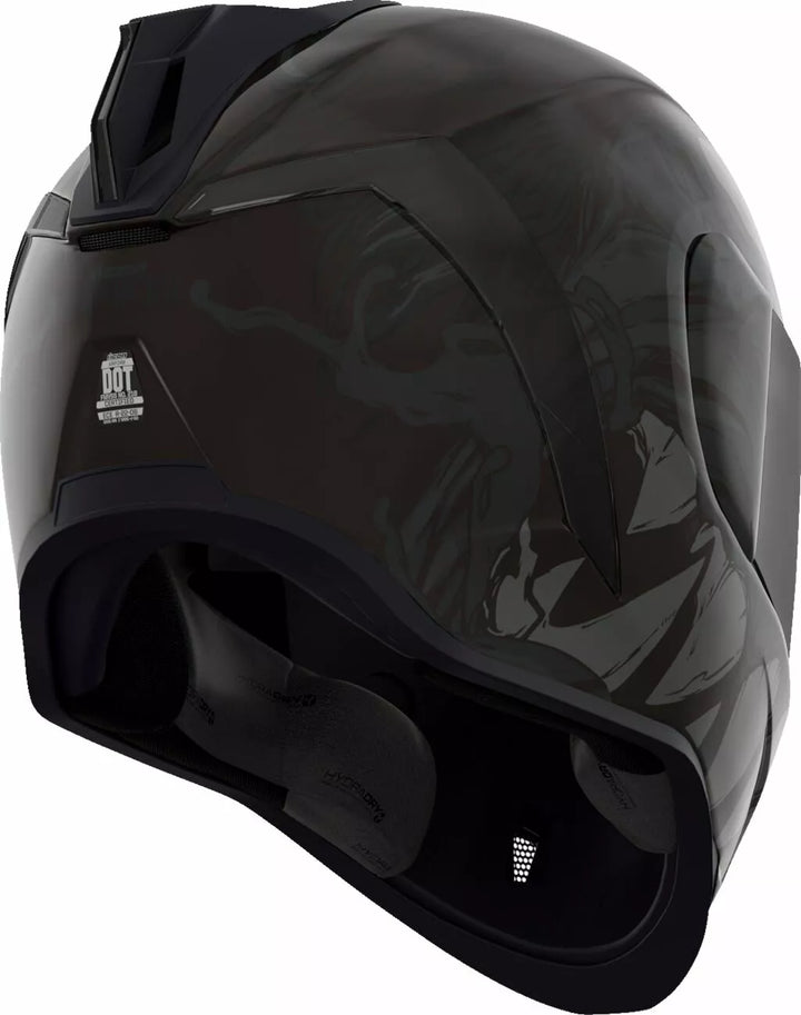 Continuous Venting System, FAG-FREE ICON OPTICS ™ Shield with Rapid-release ™ System, Injection Molded Polycarbonate Shell for Strength, Internal Airflow Geometry, Sculpted NECK Roll, Prolock ™ Switsch, the EXTERIOR WITH LOCKING SHIVING SWEQU Visor must only be used while the main face shield is in the fully closed position, removable Molded Breath Deflector, Removable Hydradry ™ 3-Piece Moisture Wicking Liner, Internal Speaker Pockets Work With Icon's R.A.U. Bluetooth Device, Includes Dark Smoke Dropshield ™ and Rubatone Black Speedfin ™