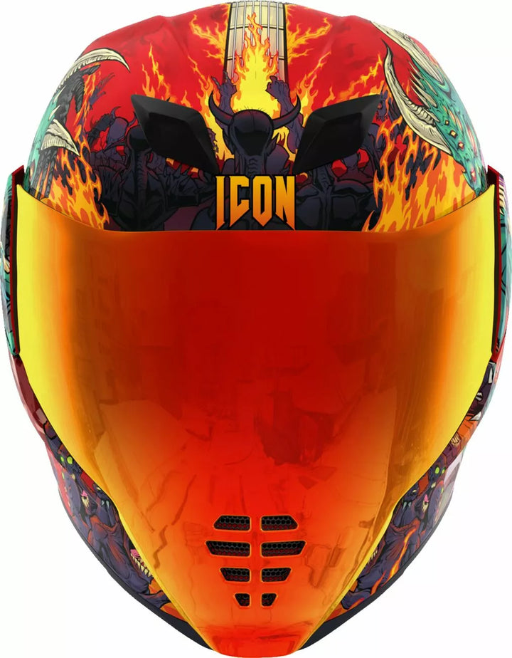 Removable Molded Breath Deflector and Chin Curtain, Injection Molded Polycarbonate Shell for Strength, FAG-FREE Dropshield ™ with Exterior Switch, Recessed Twin Channel Supervent Cooling System, Multiple Oversized Intake Ports Side Plates, The Dropshield ™ Visor Must Only Be Used While the Main Face Shield Is In The Fully Closed Position, Removable Hydradry ™ Moisture Wicking Liner, Glow in the Dark, Internal Speaker Pockets Work With Icon's R.A.U. Bluetooth Device, Includes Clear & RST SUNSET FOG-FREE FLITESHIELD