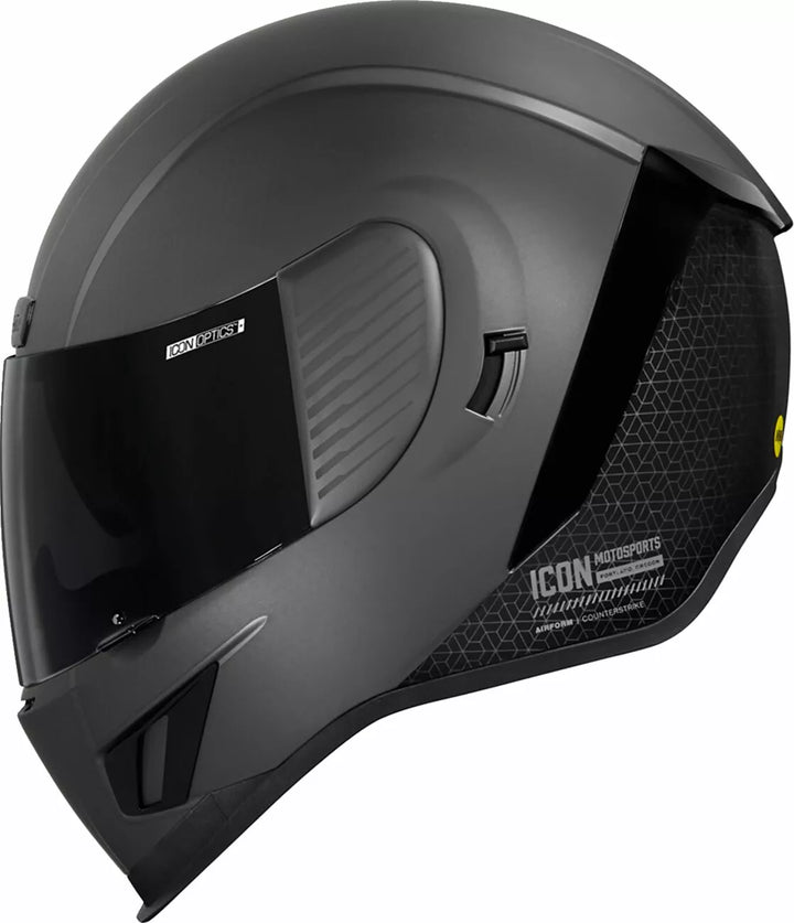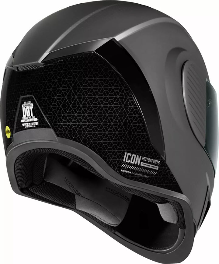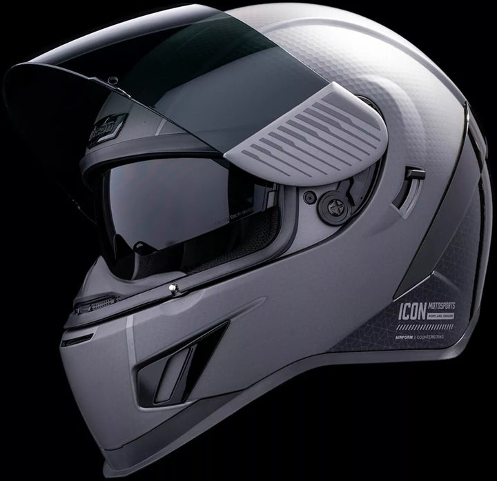 Injection Molded Polycarbonate Shell for Strength, ProLock ™ Positive Shield Locking System, Continuous Venting System, FAG-FREE ICON OPTICS ™ Shield with Rapid-Reale ™ System, Sculpted NECK ROLL, Internal AirFlow Geometry, Internal Drop Hield Visor must only be used while the main face shield is in the fully closed position, removable Molded Breath Deflector, Removable Hydradry ™ 3-Piece Moisture Wicking Liner, Internal Speaker Pockets Work With Icon's R.A.U. Bluetooth Device, Includes Clear & Dark Smoke Icon Optics ™ Shield, Includes Dark Smoke Dropshield ™, Includes Black AirForm Chin Vent ™