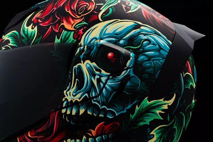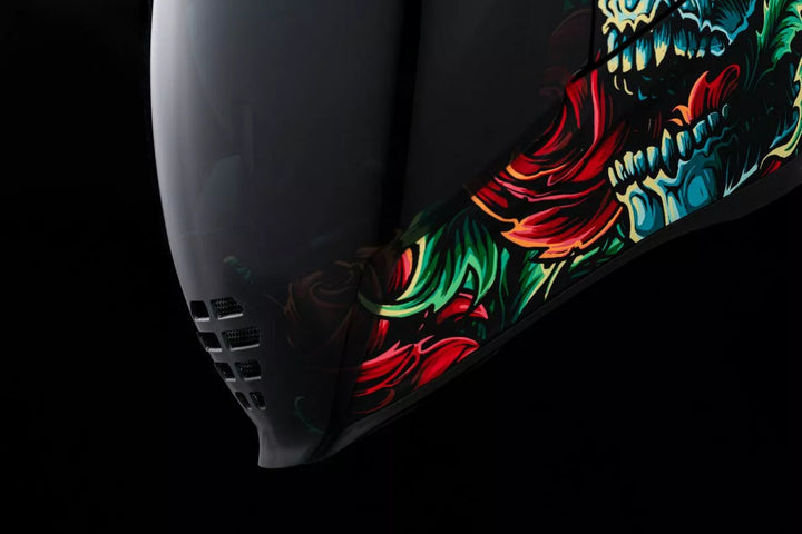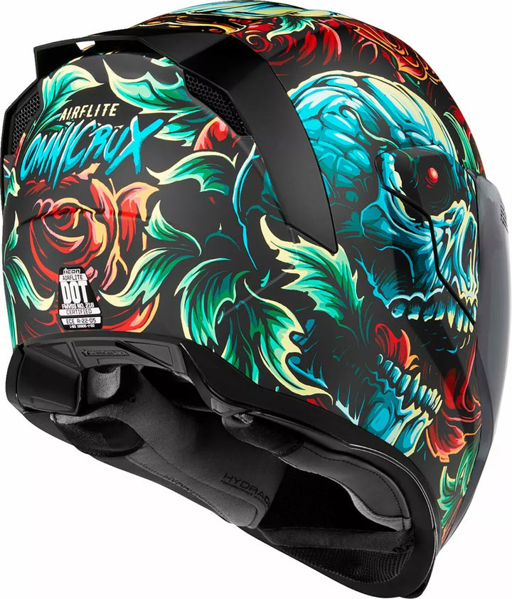 Injection Molded Polycarbonate Shell for Strength, FAG-FREE Dropshield ™ with Exterior Switch, Quick-Change Fog-Free Fliteshield ™ With Sideplates, Removable Molded Breath Deflector and Chin Curtain Supervent Cooling System, Internal Speaker Pockets Work with Icon's R.A.U. Bluetooth Device, The Dropshield ™ Visor Must Only Be Used While The Main Face Shield Is In The Fully Closed Position, Removable Hydradry ™ Moisture Wicking Liner, Includes Clear & Dark Smoke Fliteshield ™