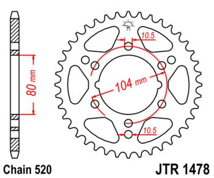 With the Leading Edge Edge Technology and Using Only the Highest Grade of Special Steel Alloys, JT Sprock's Produce A Full Range of Superior Quality Motorcycle Front and Reary Sprocks. Ultra-Durable High Carbon C49 Steel Chain_pitch: 520.0 Material: Steel rear_prolet_teeth_count: 43.0 REAR_PROKET_TYPE: 1478 REAR_PROET_SSERION: Standard