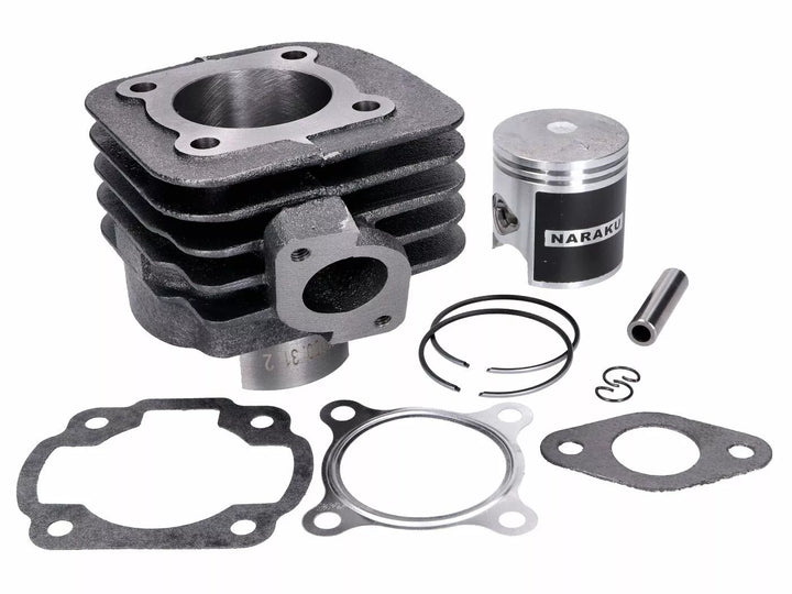 High-Torque 70cc Naraku cylinder kit, this cylinder kit is not designed to be revs, but Rather it shows ITS STRENGTHS IN THE LOWER RANGE, Just Above The Idling Speed Comes Solid, Constant and Very Strong Acceleration, All Thats, Writout, Writout Power Output from Standing Make for Very Good Starting and Traffic Light Getaways, and "Hill Climbing" Is Made Easier, Even With Pillion! The Sound is Fairly Standard, this cylinder highly suitable for everyday use, because the performance improvement can be Achieved using the original exhaust system, compatible for original and sports exhaust systems, jetting must be increased [+7% to 10%]. Cylinder, Such as the Naraku 70cc Head, The cylinder can howver run using the standard head, this creates higher compression and the electric starter could have ice's turning the Engine