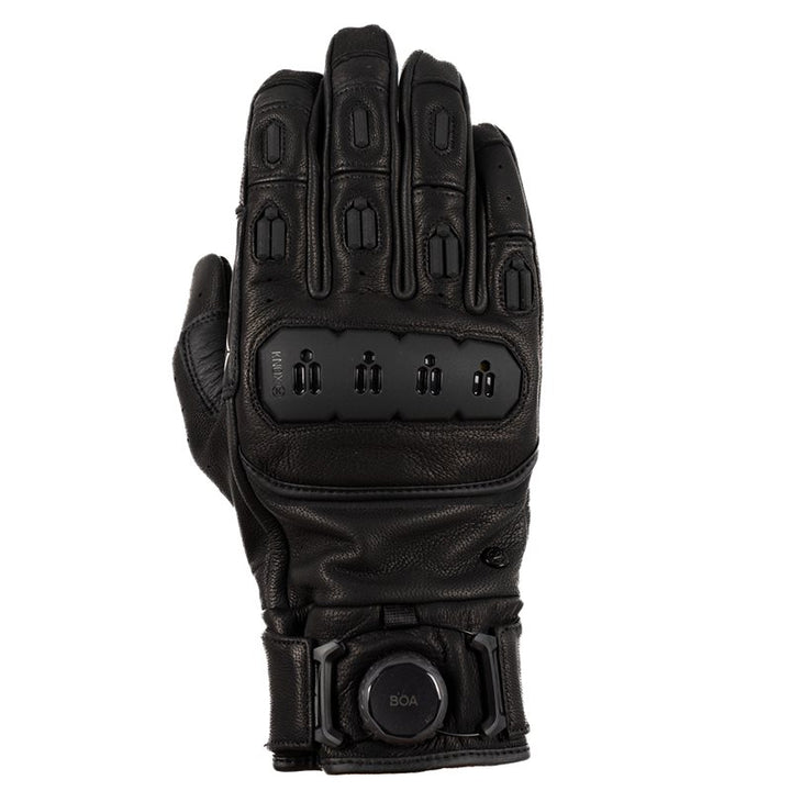 The gloves are made of durable leather and equipped with cast plastic reinforcements on your fingers And one molded knuckle guard with Knox Micro-Lock technology, which gives superior shock absorption and shelter in case.