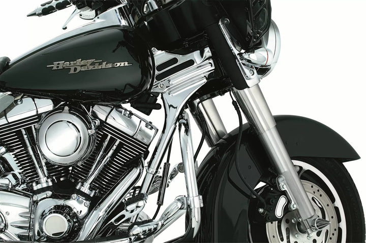 Add Brilliance to a DUll Area With These Smooth, Quickly Installer that Shroud the NECK AND EXTEND DOWN THE FRAME, Cover is enlarged Enough on the right side to accommodate the Inline Cruise Control Pull-off Switch Found on Road Towing Models Coverage Almost All The Way Down To The Floorboard Mounts, Easy to Install