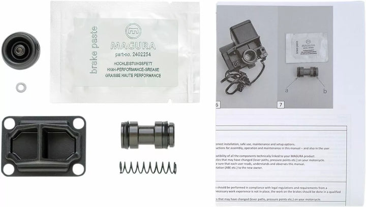 Everything Necessary for a Complete Master Cylinder Overhaul, Kit Includes Piston with Seals and Spring, Piston Bellows, container Bellows, Sealing Ring for Piston Mounting Screw and Silicone Brake Paste