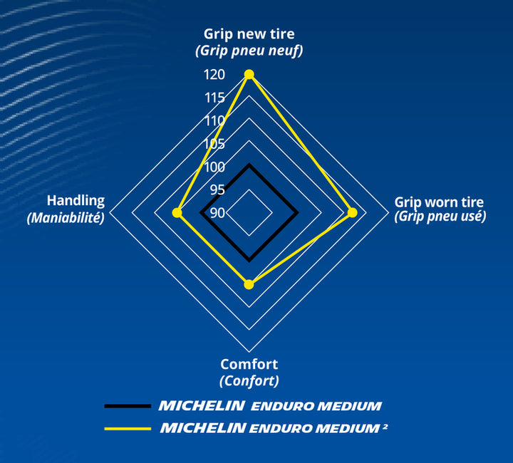 Thanks to an optimized profile and michelin bias technology, they victim Superior Shock Absorption on Rough Terrain. You get the Perfect Blend of Comfort, Precision and Versatility, for Greater Riding Pleasure. Aspect_ratio: 90 Ground: Mix Homologation: FIM-Homologated Position: Reara Rim_diameter: 18 Speed_index: R <170 km/h tire_category: Enduro, rally-raid tire_family: motorcycle & scooter: 0 Tire_structure: x -ply tire_width: 120 tubeless_or_tuBerty
