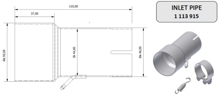 MIVV Inlet Pipe 55 > 44 mm 00.73.KU.00005
