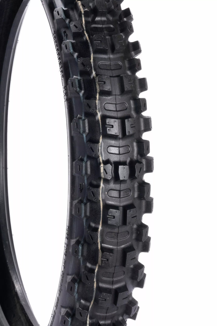 The Latest Addition to the Motoz MX Tyre Range is the Terrapactor MXI (MX Intermediate) Competition Tyre. Engineered with a Lightweight Carcass and Designed to Excel in Intermediate to Hard Terrain (Mix of Loose and Packed Soil, Hard Packed Soil and Deep Heavy Ruts). The Benchmark for MX Tyre Performance Across Multiple Types of Terrain!, The MXI Tyre Stands Out With Its Distinctive Pattern, specifically Crafted to Deliver Top Performance. By strategically Incorporating Flex Points Within The Carcass and Knobs, The Mxi Tyre Provides Predictability and Enhanced Corner Grip, Adapting and Flexing According to the Terrain to Give Greater Control and Confidence While Riding. Hard Packed Soil and Deep Heavy Ruts), Full Range from Mini-Cross to Big Bikes (15 Different Sizes), Two Front Tyre Sizes, 80/100-21 For the Most Aggressive On Track Performance and the All-New 90/100-21 With a Taller Profile for Increased Conditions, Unique Flex Zones Built Into Carcass and Knobs For Improved Feel and Compliance, Flex Zones Incorporated Into All Treat Rows to Improve Corning Feel and Drive, All New Inner Sidewall Construction for Improved Compliance