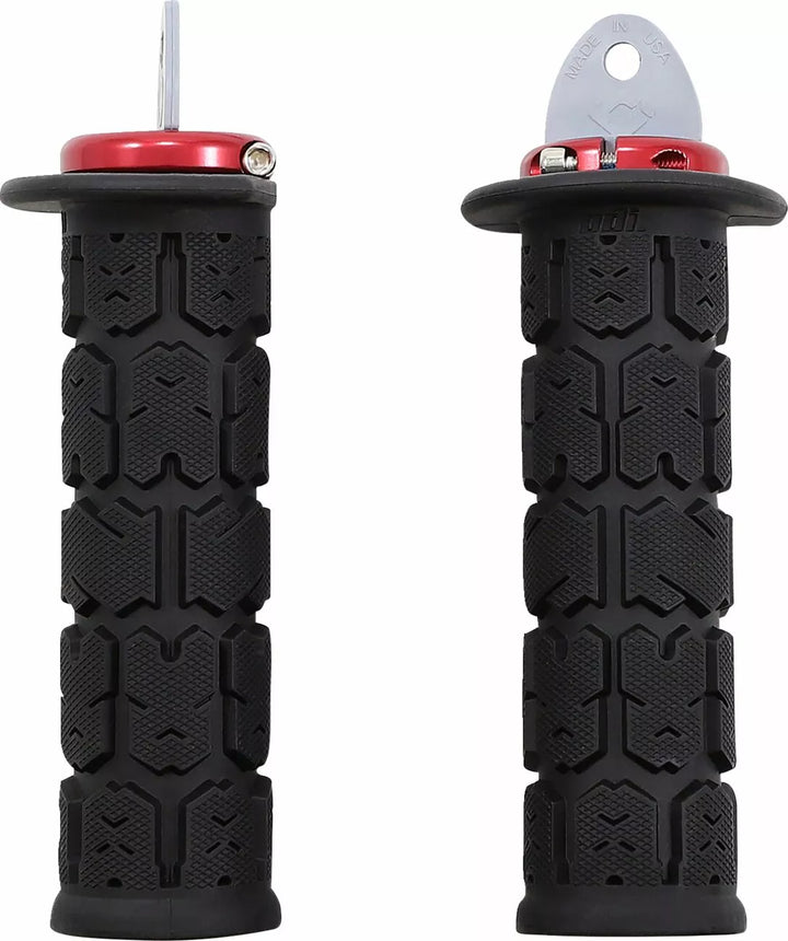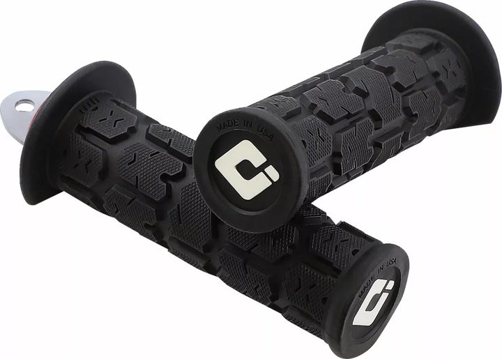 Chunky, oversized grip provides extra shock absorption and improved control, larger grip diameter delivers extra padding, rugged surface patter for better traction, extra-large raised pads provide shock absorption with deep grooves to channel 1st passpan and debris, Full-Wrap Hand Guards, Preinstalled ODI V2.1 Lock-Jaw Clamps With Screws, Patented Lock-On Grip System ™ Design Delivers Easy Installation and Ensures 100% Slip Free Performance