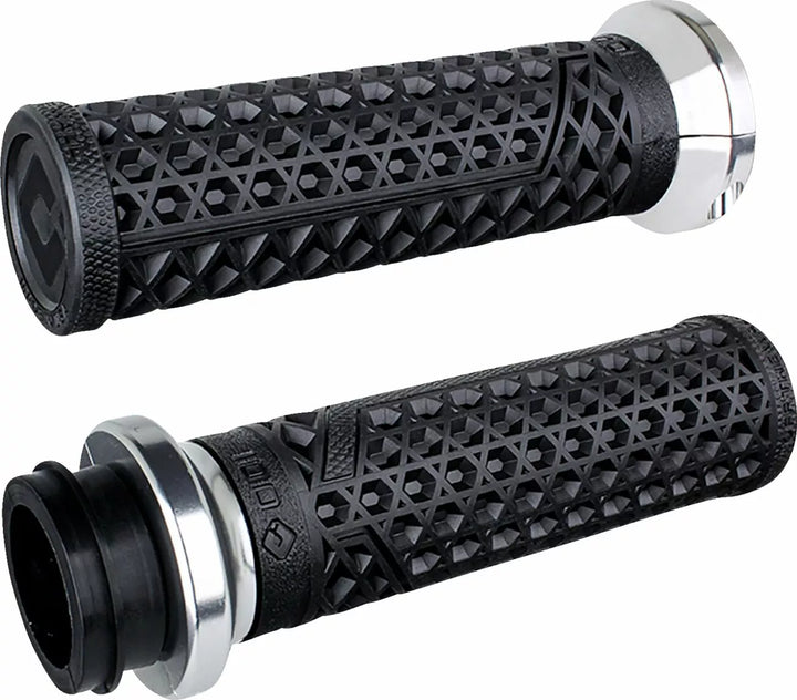 The Vans V-twin Lock-on Grip System Feature The Classic Vans ᆴ Waffle Sole Pattern And are Built to Deliver An amazing Riding Experience, 100% Slip-Free Performance Guaranteed, In-Molded Throttle Tube With Integratuation, SIDE CLAMP Eliminates The Need for Grip Glue or Safety Set-Sscrews, Providing Simple Installation and Removal, T15 Torx Bolts Provide Extra Secure Clamping For Solid, Twist-Free Mounting, Proprieth Wydium Medium-Compound Duraromet Flange, made in the U.S.A.