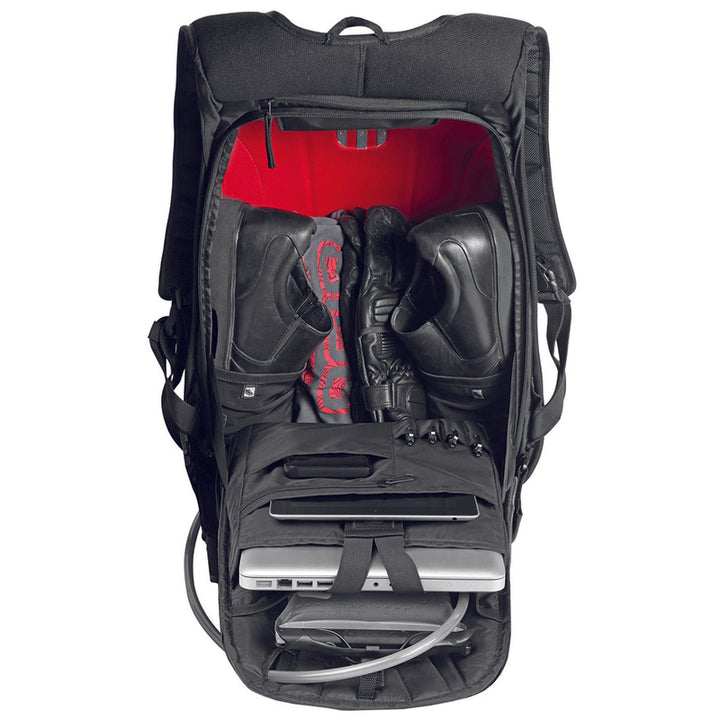 Streamlined Single Shot Molded Exterior is Water Resistant and will not deform from Wind Shearsshoulder Gasket Conforms to Body and Increases Aerodynamics Bolstered Back Foam Profile Increases Air Ventilation Soft NECKS SHOULDER STRAPS IN EXTERIOR COMFORT HILE RIDING AND WILL NOT SCRESS AND WILL NOT COMING AND WILL NOT SCRESS AND WILL NOT SCREST AND WILL NOT SCREST AND WILL NOT SCRACE AND WILL NOT SCRESS AND WILL NOT SCRAP Safety Piping and LogoreMovable Off Center Hip Belt Won't Scratch Gas Tankzippered Fleece Lined Personal Electronics PocketLarge Main Compartment with Multiple Interior Storage Compartment Courting Organizer Panel With Zippered Security Pockets Red Interior Liningergonomic, Padded and Fully Adjustable Riding Specific Shoulder with Quick Release Exit BuckleConcealed Aerodynamic Carry Handlefully Adjustable and Removable No Slip Sterum Strapintegrated Removable Helmet Carry Padd Most 15 ”Laptoppaded iPad/Tablet/E-READER SLEEVYDATION READYCustom Metal Ogio Logo and Trims Specs: 19" H x 12.5 "W X 6.5" D-H: 48-W: 31.8-D: 15 (cm) Weight: 2.7 lbs-1,7 lbs-1,2kgkt Depth: 15 Height: 48 Luggage_capacity: 22L Width: 31.8