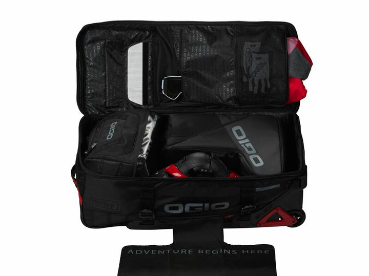 The All New Admiral of the Ogio Gear Bag Collection, The RIG T-3 IS DESTINED TO Become an Instant Classic and Must have equipment for any Serious Rider! This 3-in-1 Gear Bag Comes Complete With Full Featured/Removeable. Head Case Helmet Bag and Removable Washable Full Featured Boot Bag. With Adjustable Cargo Pockets, Added Side Compartments for Storage, A Full Changing Food, Hideaway Essential Tool Holder and Perfect Pocket Placement to Carry Absolutely Everything, The RIG T-3 is Indeed the Best Carry All Rider Bag We Have Ever Ceat! 3-in-1 bag features separate and removeable full featured head case helmet bag and boot bagextra wide lid opening for easy access to gear bags and under lid storagehelmet case accessible via top panel openingvelcro opening mesh panel for air flow Any Conditionheavy Duty Oversized Wheels With Wheel Protection Guards Internal Adjustable Mesh Dividers for Custom Organizationhideaway Changing Matmultiple Reinforced Padded Grab Handle3 under Lid Storage Hold Pockets for Increased Capacity and Top Slash Zippity and Top Slash Zipper System Telescopic Pull Handles template Tool Storage Pack (Included) Dimensions: 92x43x39 CMCAPACITY: 145 Litres - Weight: 6.4 kg Color: Black Depth: 39 Height: 92 Width: 43