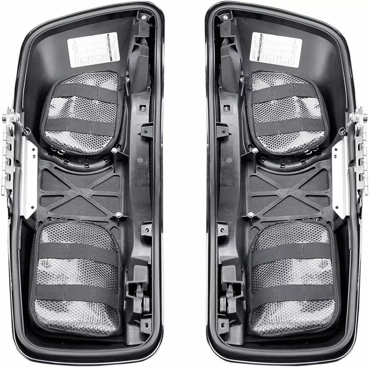 Lid Organizers Provide A Great Space to Store Small Items Undernath The Saddlebag Lid, 2 Zippered Pockets With Elastic Keepers That Are Great To Hold A Flashlight, Wrenches and Other Similar Items, these Sandwich Between The Lid Locking System