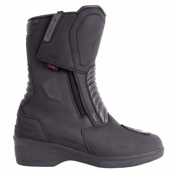 Rapid High motorcycle boots in leather are designed with women in mind. Thanks to the elevated heel and internal wedge, you don't need to lower the motorcycle, and your silhouette is optically elongated.