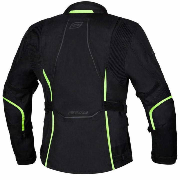 Motorcycle Touring jacket for women has a waterproof, removable Reissa® membrane that protects against wind and rain. It has eight valves front and two rear. It has CE level 1 elbow and shoulder cover and a pocket on the back where you can add a protection.