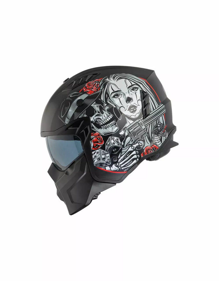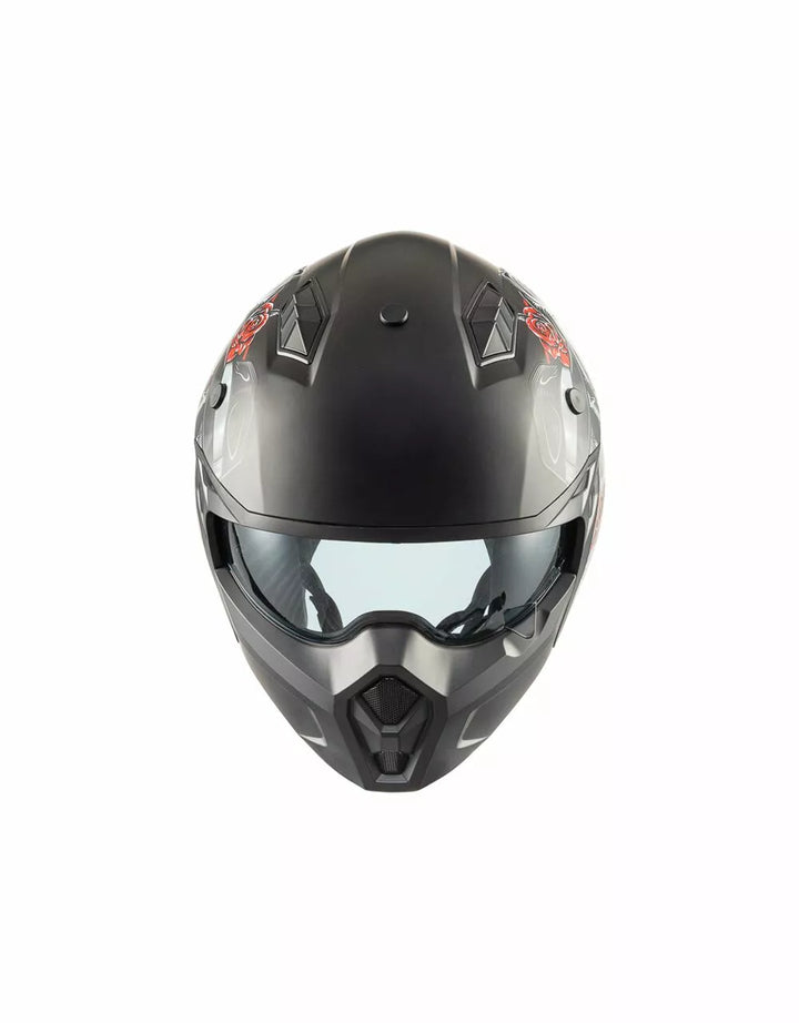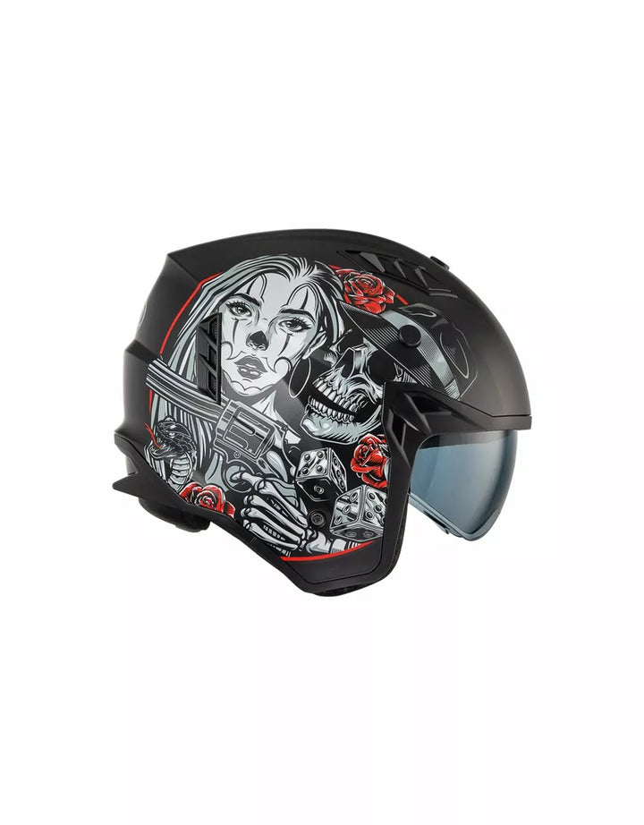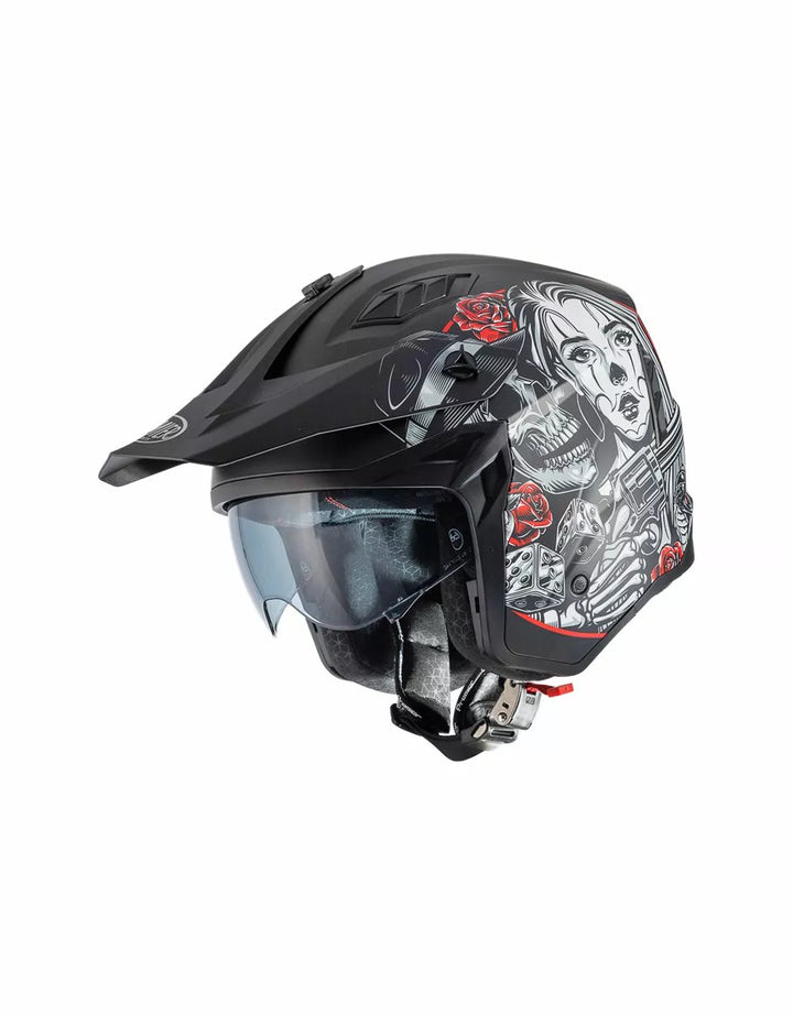 Thermoplastic Outer Construction is Lightweight and Inner Construction is Made of EPS Materials with Varying Density Depending on the Area to Ensure Impact Response., Features Removable Chin Section to Turn This Full-Face Helmet to a Jet Helmet. , Visor is injection Molded Transparent Polycarbonate and Has Anti-Scratch Treatment. , Internal Visor Works Like Sunglasses and Can Be Raised Inside The Shell., Ventilation System Has Two Air Intakes On The Upper Part of the Shell and Two Extractors on the Back., Positioning of the interior has been designed to leave View Wide and Feeling of Movement. , Interiors are Removable, Washable and Made Hypoallergenic by the Sanitized Treatment.