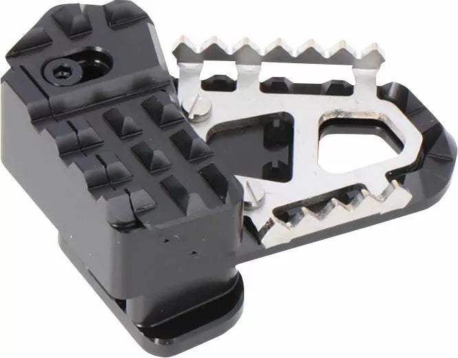 The Extension for Brake Pedal is Ideal for Off-Roading: It Enhances The Original Brake Arm Treat and Guarantees A Safe, controlled use of the brake. , When Standing, The Angle of Your Knee Changes, So Your Foot Cannot Put As Much Pressure on the Smaller pedal. , The extension of husbands it possible for the contact surface to be both broader and higher., Thanks to the raised contact surface, your foot is angled more shals, so it can reach and control the brake arm more easy, even when standing. , That Means the Extension for Brake Pedal Offers Better Safety and Better Control Over the Realar Brake., When Off-Roading, You Often Alternate Between Seated and Standing Positions. , In Addition to the Raised Surface, The Extension for Brake Pedal Features a Widacts Surface. , This is equipped with a ridged Surface, so it offers improved grip when the arm Surface is dirty or wet., Enhances the original Brake Pedal, Raised and wider Surface, Improved Grip Thanks to Ridged Surface ヨ Even Surfae Vet and Dirty