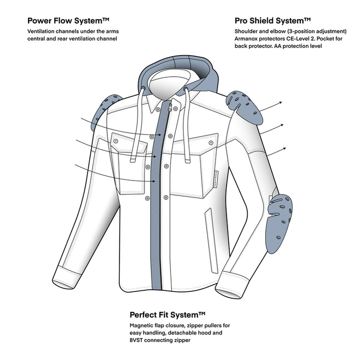 With Armorite ™ material Do you get a shirt that is both Durable and compliant, and the AA level of protection gives you a safe feeling even as the pace increases. Perfect for both city driving and shorter trips outside town!