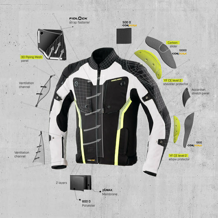 Rebelhorn Textile Motorcycle Jacket Borg Black /Flu