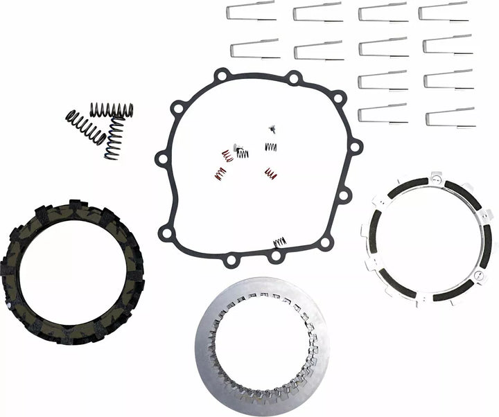 Increases Torque Capacity for Reduced Wear, Reduced Heat and Increased Power Transfer Capability, Increases Clutch Performance and Rider Control, Features Torqdrive Friction Technology, Basket Sleeves Protect the Clut Basket from premature Springs, Basket Sleeves, Clutch Cover Gasket, and Full Clutch Pack, INCREASED FRICTION PLATE COUNT FROM 9 OEM FRICTIONS TO 10 FRICTION PLATES (INCLUDING THE EXT DISK). Centrifugal Exp Disk Provides lives Free Clutch Engagement and Disengagement, Replacing Clutch Springs Included ヨ Matching oe liver pull strength