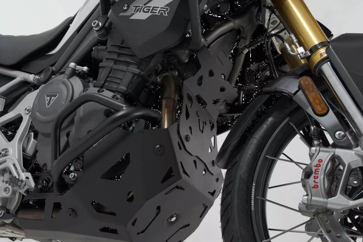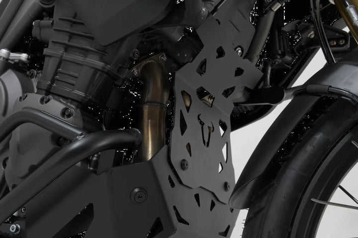 The Engine Guard Extension Protects The Front Area of the Engine Block From Rock Chips, Made From Brushed and Power-Coated Aluminum, The Extension Can Be Mounted On Its Own or In Addition to an SW-MOTECH Engine Guard, 3-Piece Protection Engine Block by Up To 130 mm, Included in Delivery, Mounting Materials, Mounting Instructions