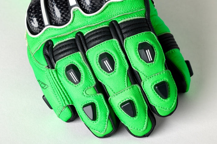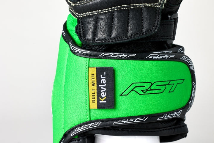 Made with Both Full-Grain Cowhide and Kangaroo Leather, The Glove Features a CE Level 1 Carbon Knuckle Protector for Impact Protection. Aramide Fibre on the Palm Stitching and Underlay, Along with Double Layer Kangaroo Leather and an RST Palm Slider Protect the Palm in the Event of a High Speed ​​Slide, While the Double Wrist and Cuff Closure Offer A Secure Fit. Dupont ™ Aramide Lining Throughout The Rest of the Glove Prevents Tearing, and Elasticated Conjoined Fingers to Prevent “Finger Roll” Without Affecting Reach or Flexibility When Changing Gear.