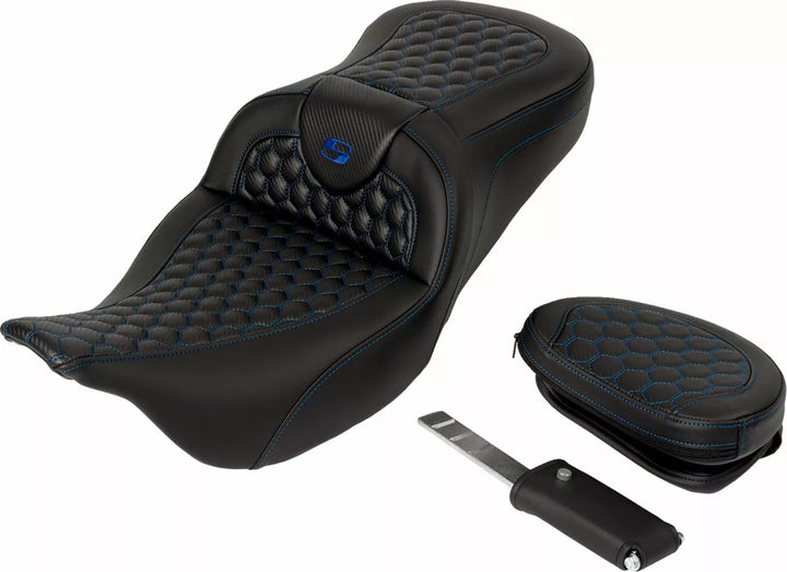Each Seat Combines a Gel-Core ル Interior and Pro-Foam ル To Create A Foam With A Balance of Compression and Resilience Gear Long Distance Comfort, Pro-Foam ル Unique Molding Process Creates, See Elevae Resistant, Self- Durability as well as Comfort, Honeycomb (HC) Pattern Incorporates Modern Geometry In A Stylish Seat Cover, Saddlegel ル In Front and Real Reduces Tailbone Pressure and Increases Circulation and Comfort for Both Driver and Passenger, Designed and Made in the USA