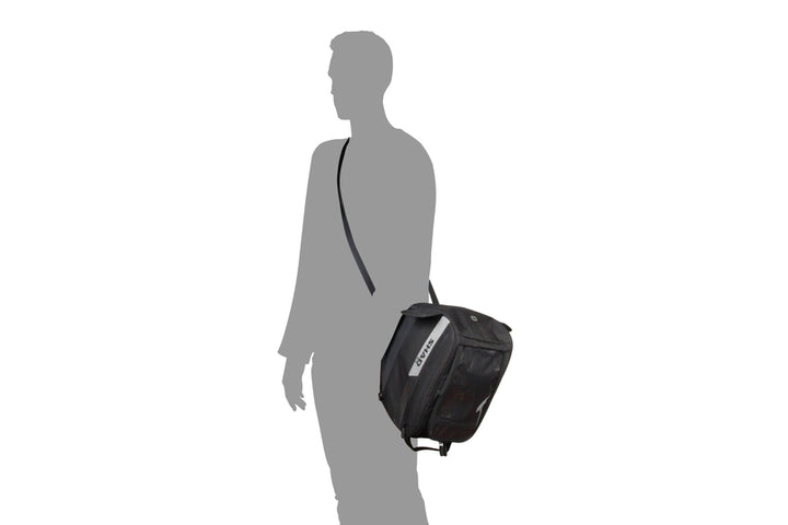 Features:- Capacity: 25l. 1 Jet Helmet.- Main Compartment of Rigid Structure with Closure, Which Allows The Use of a Padlock for Greater Security.- 2 Side Pockets With Closure.- Zip with Pullers For use with gloves.- Padded handle. adjudustable Shoulder