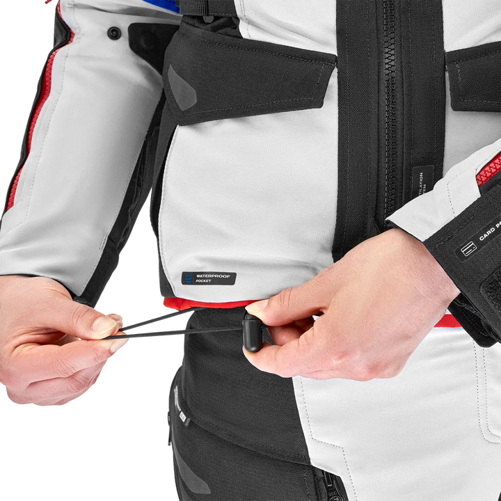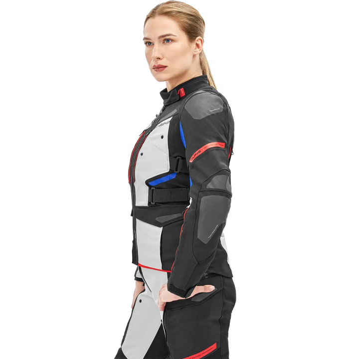 With Lady Fit-Design, stretch panels and well thought out adjustment at the waist, bust, upper arms and wrists, sits Dune Lady as it should. It follows your body - not the other way around. An extra high collar with soft neoprene provides comfort even on long journeys, and the integrated zippers let you pair the jacket with Dune Lady pants for a complete touring outfit.