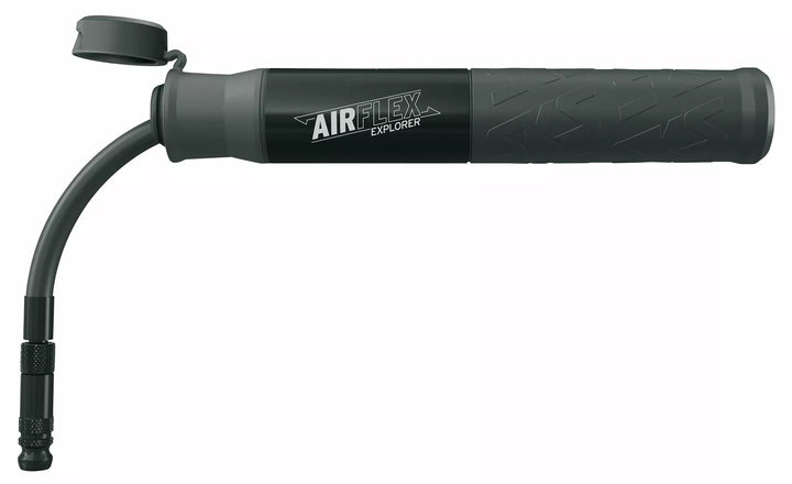 A Small Pump With Great Impact: The SKS AirFlex Mini Pump Now Makes It Even Easier To Pump Up Mountain Bike Tires. , The Secret Is Concealed by the Handy Dust Cap: A Hose is Store in the pump tube, which can be pulled out and screwed on Valve Head for a Complely Airtight Connection of Preat Valves. , The Flexible Hose Provides Plenty of Scope for Pumping Up To A Pressure of 5 Bar (73 PSI). This protects not only the valve on the bike but also makes it easy to use., The soft compound handle and moded grip on the Front Ensure a good grip. , The Mix of Aluminum and Plastic Carbon Components With SKS Embossing Makes The Lightweight Mini Pumps A Must-Haard for Design-Conscious Bikers., Made in Germany.
