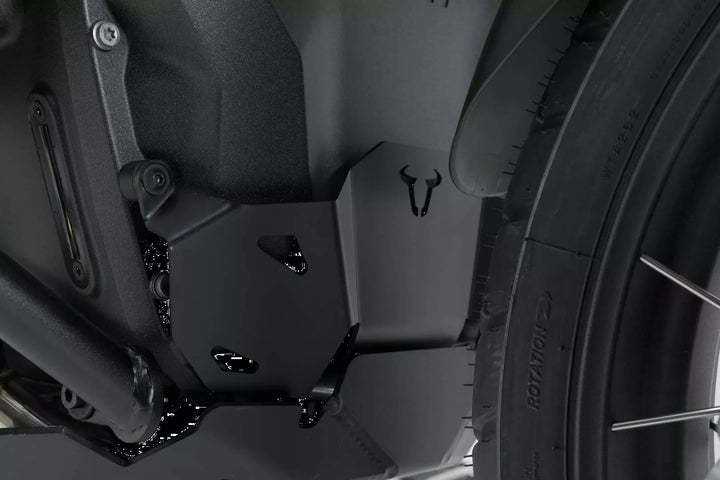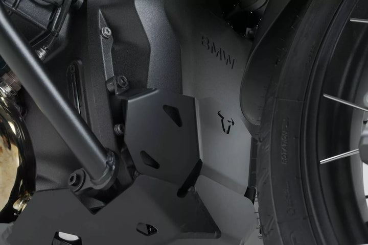The Engine Guard Extension Protects The Front Area of the Engine Block From Rock Chips, Made From Brushed and Power-Coated Aluminum, The Extension Can Be Mounted On Its Own or In Addition to an SW-MOTECH Engine Guard, 3-Piece Protection Engine Block by Up To 130 mm, Included in Delivery, Mounting Materials, Mounting Instructions