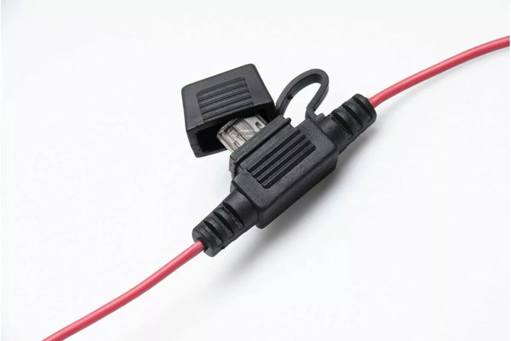 This cigarette lighter outletcan be connected directly to the motorcycle battery via the suppliedcable harness, The high-quality outlet and completely insulated cable harnessare protected from splashing water by rubber seals, Self-installed cigarette lighter socket, Fully insulated and sealed cable harness, Included in Delivery, 1 x Cigarette Lighter Outlet (12 V), 1 x Cable Harness, 1 x Safety Catch (15 A), Mounting Instructions, M8 or M10 Mounting Plate Sold Separately