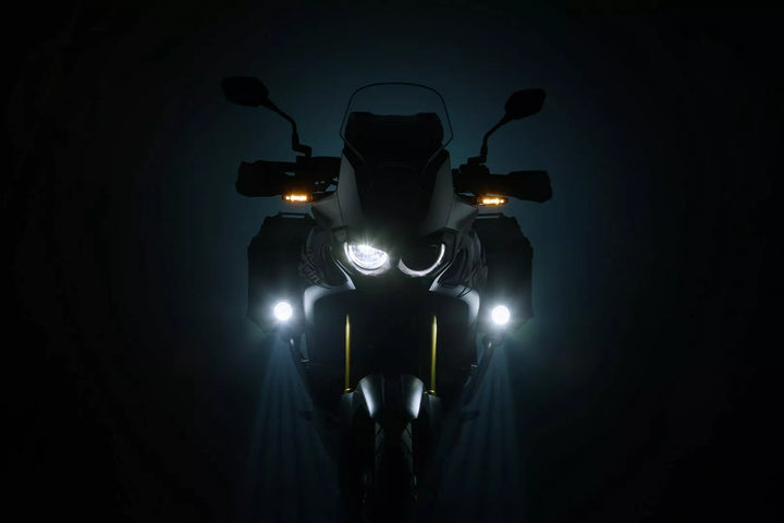 EVO High Beam Lights are ideal for riding long distances in/off road conditions where maximum beam distance is desired to increase visibility and safety, evo lights represented outstanding design, high-quality standards and reliable waters and dust protection (IP69) Trouble-free and maintenance-free operation for years, Trouble-free and maintenance-free operation through wear-free LED, Consuming Significant Less Power, Input Voltage: 12 V DC, LED: 12 W (Per Light), Luminus Flux Flux Outer diameter: 7.1 cm, Water and Dust Proof (IP69), Connects Directly to the Motorcycle, No Changes on the Motorcycle Electric Necessary, Weatherproof, Illuminated Blue Handlebar Switch for Easy Hand 27, 28 mm) or on bike-specific light Mounts for Frame Mounting (Sold Separately), Included: 2 Evo High Beams, Cable Harness with Fuse, Switch, Mounting Material