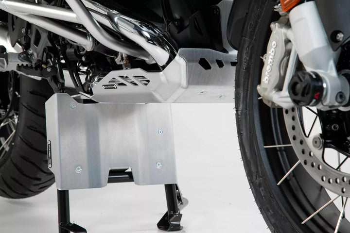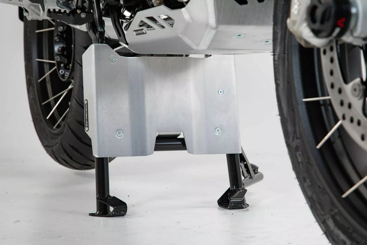 The Engine Guard Extension Protects The Front Area of the Engine Block From Rock Chips, Made From Brushed and Power-Coated Aluminum, The Extension Can Be Mounted On Its Own or In Addition to an SW-MOTECH Engine Guard, 3-Piece Protection Engine Block by Up To 130 mm, Included in Delivery, Mounting Materials, Mounting Instructions